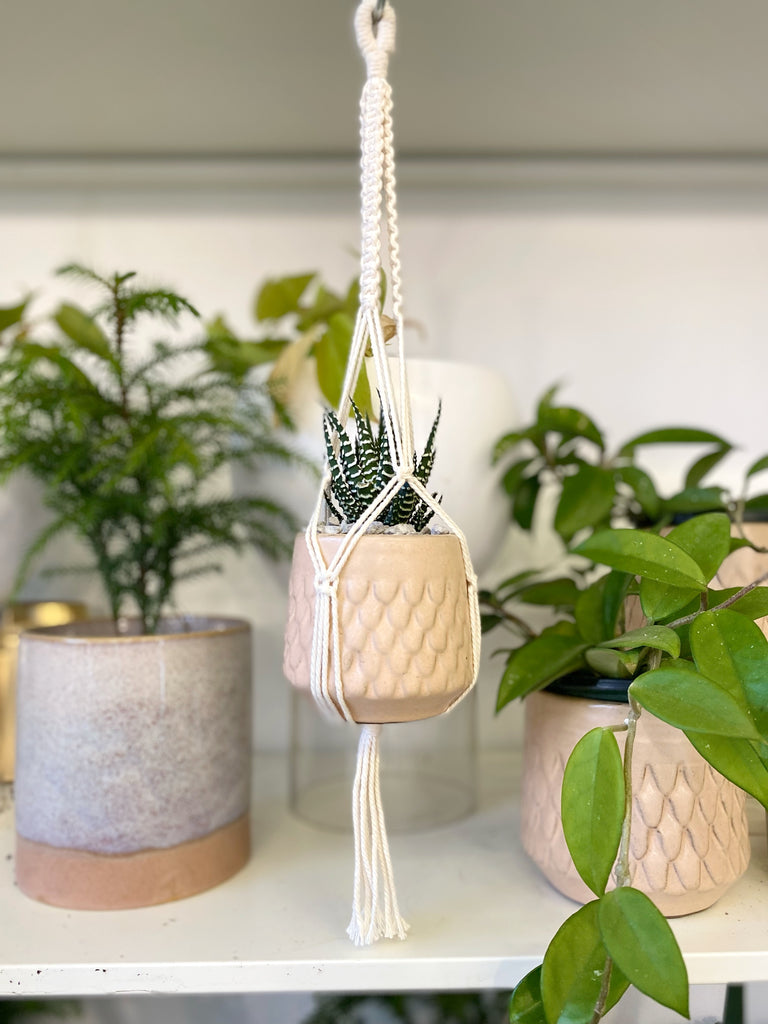 Our custom, mini macrame hanger is the perfect size for our small, desk buddies. It’s a perfect gift for the plant parent and plant lover in your life! Makes a great gift for a small apartment, small office, or dorm room 💚🪴